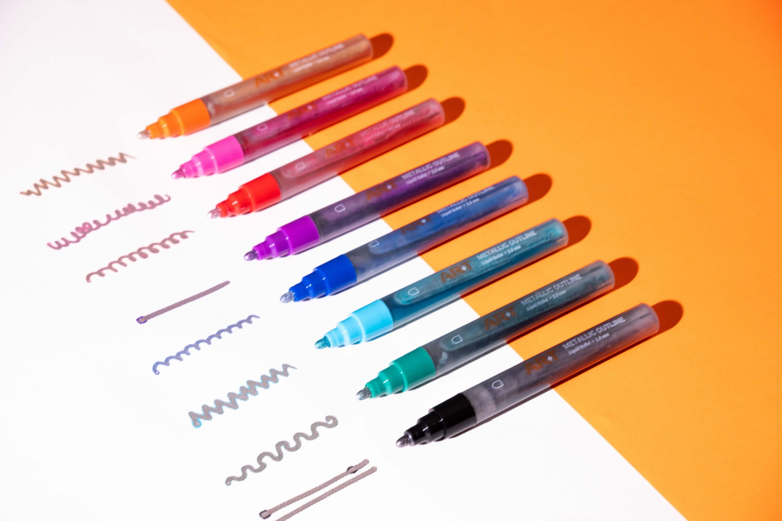 It features a traditional valve-action alcohol ink with a bullet tip, designed for use on paper. After writing, it produces a colored outline with a silver metallic center. The outline is most pronounced on white or light-colored paper, while on dark paper the outline may be less visible, though the silver center remains bright. Its special reactive ink dries to a mirror-like metallic shine, offering a brighter, smoother visual impact than standard metallic markers. Multiple outline colors are available, making it perfect for journaling, illustrations, cards, and various creative decorations.